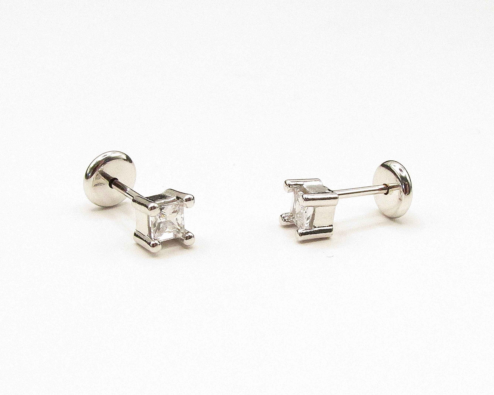 Aros abridores punto de luz cuadrado de circón blanco con tope plano especialmente para recien nacidos