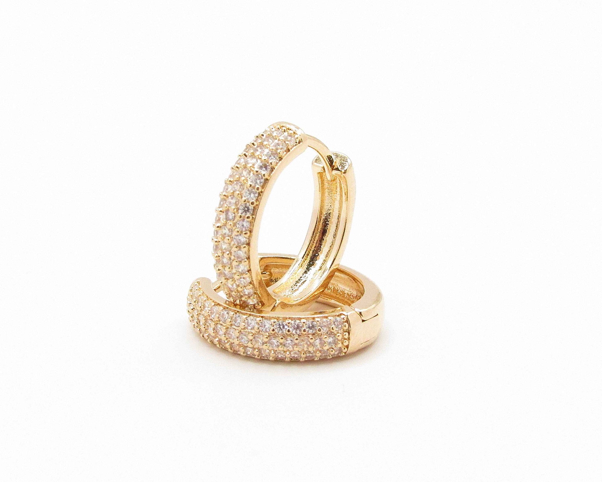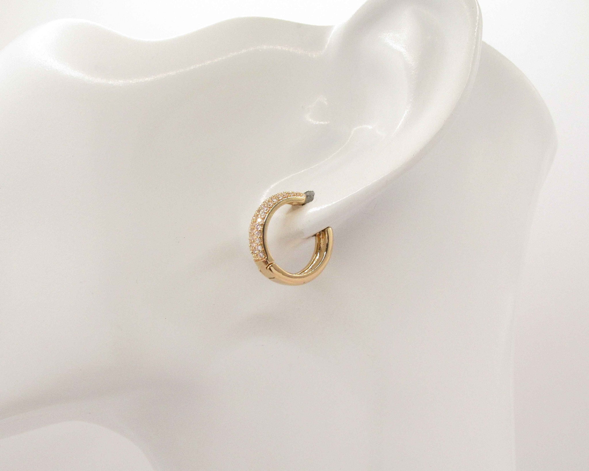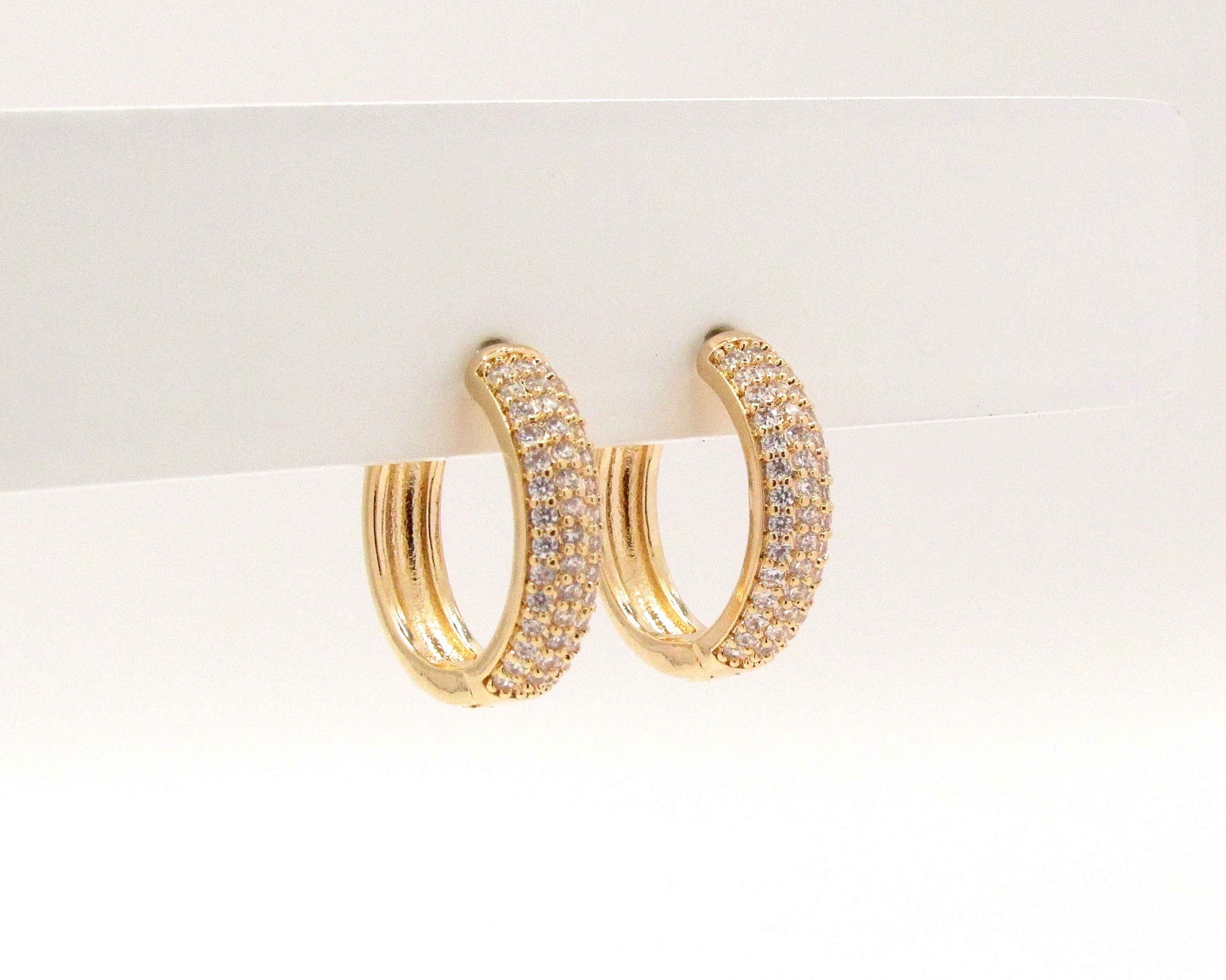 Argollas con incrustaciones de circones blancos, cierre seguro fácil Click