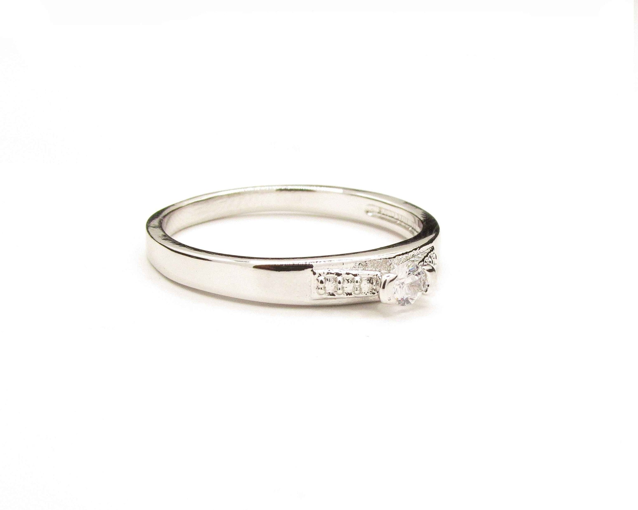 Anillo liso con un circón solitario pequeño de 3 mm y tres circones a cada lado de 1 mm