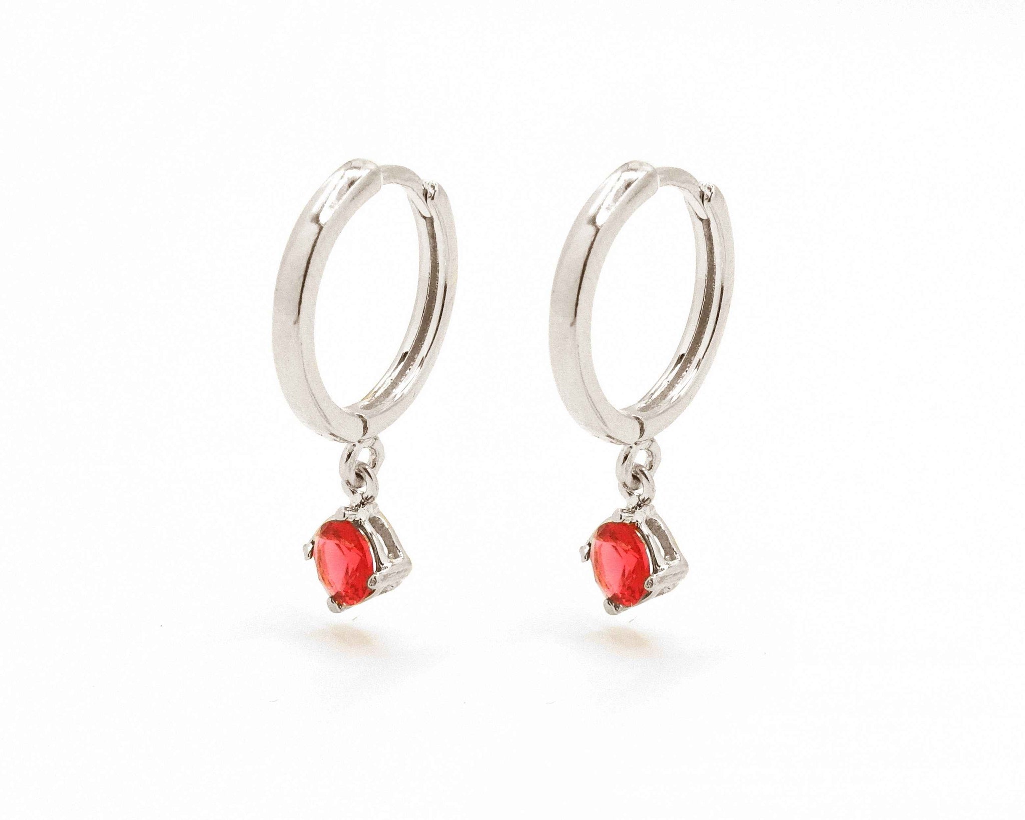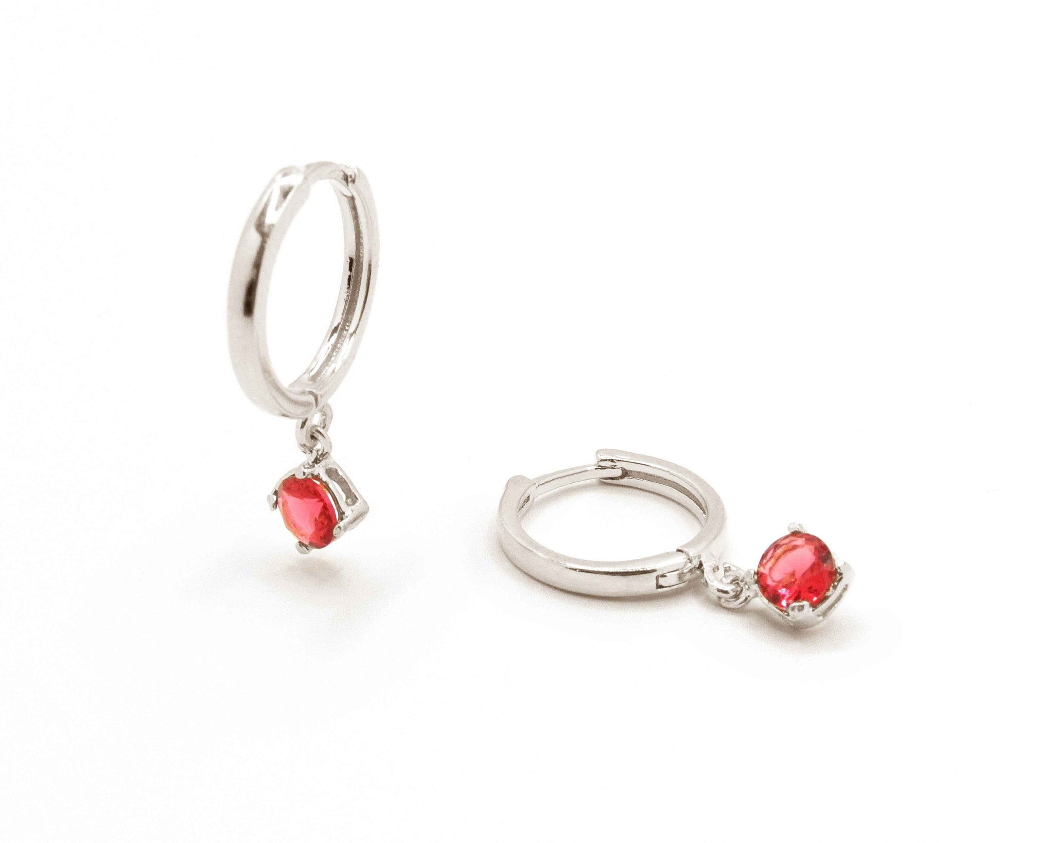 Argollas Malia, corte cuadrado y punto de luz rojo rubí clásico colgante.