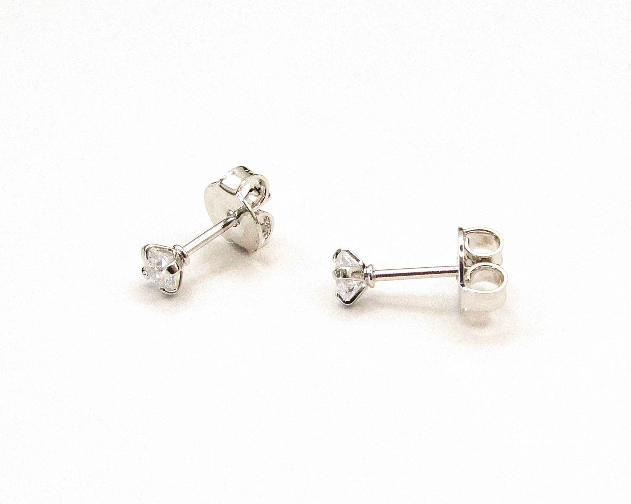 Aros mini punto de luz, circón blanco y tope tradicional mariposa.