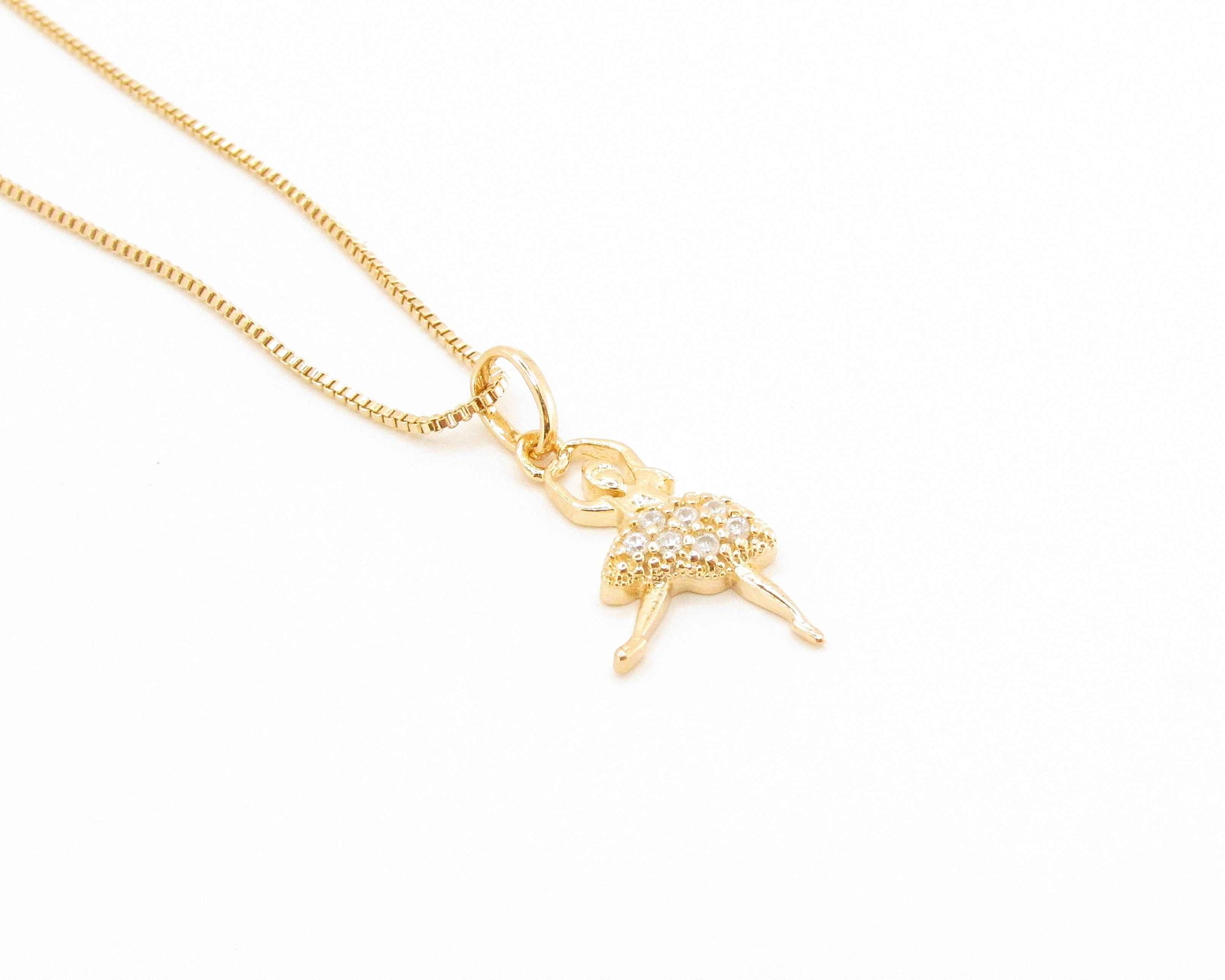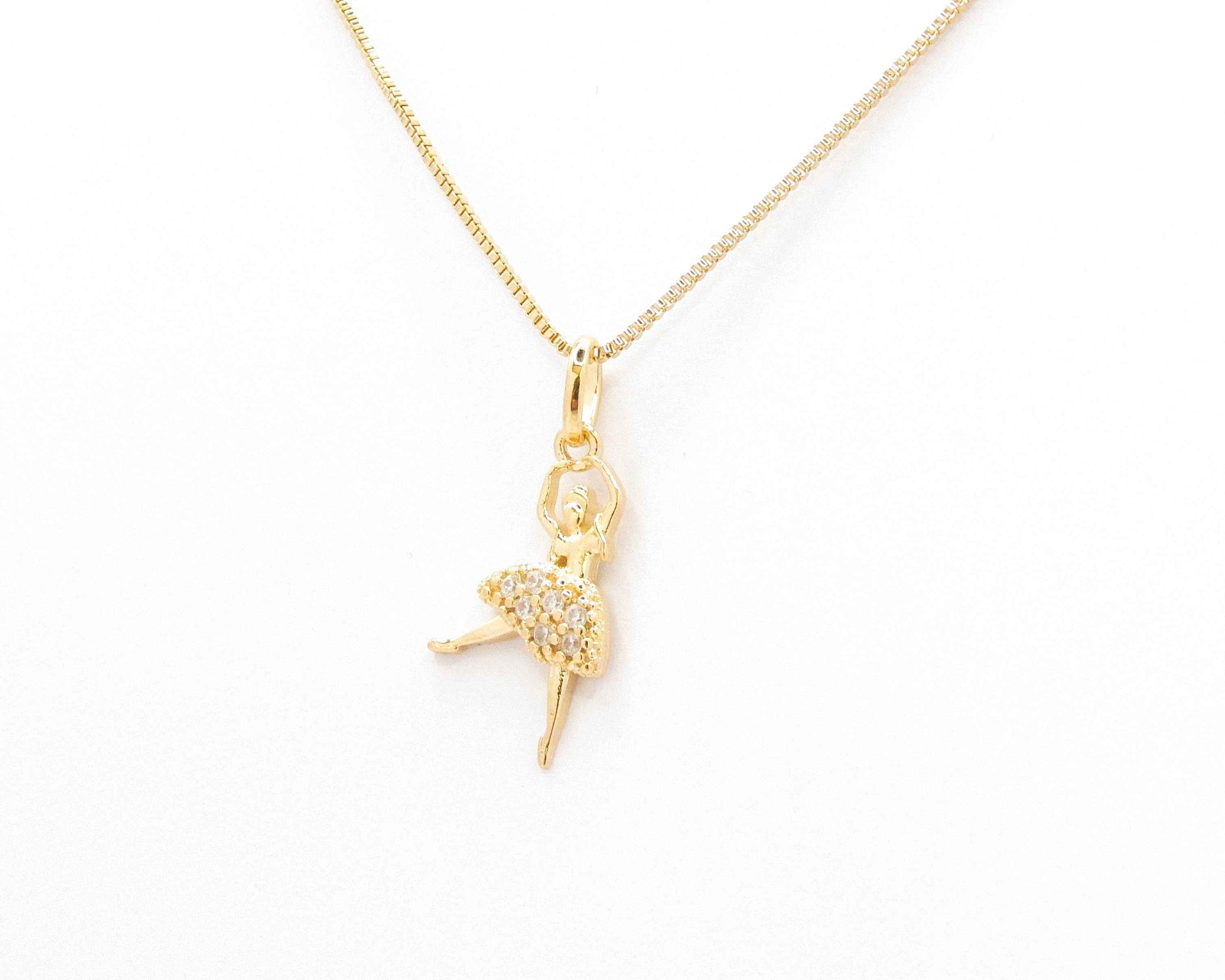 Collar con cadena singapur con colgante de bailarina y circones blancos incrustados