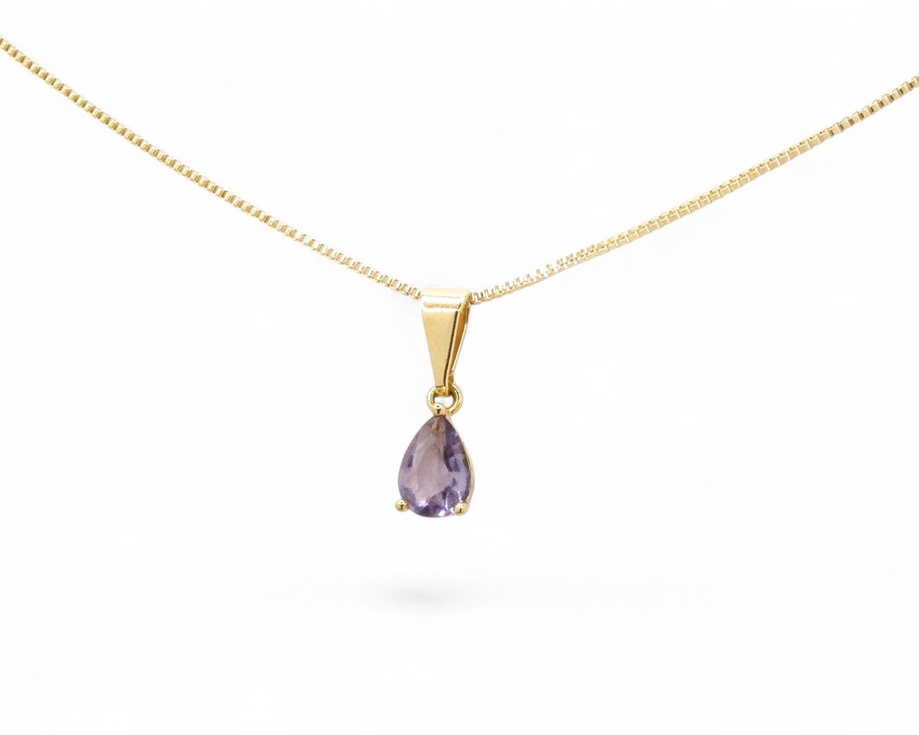 Collar cadena veneciana y colgante en forma de gota con circón morado amatista