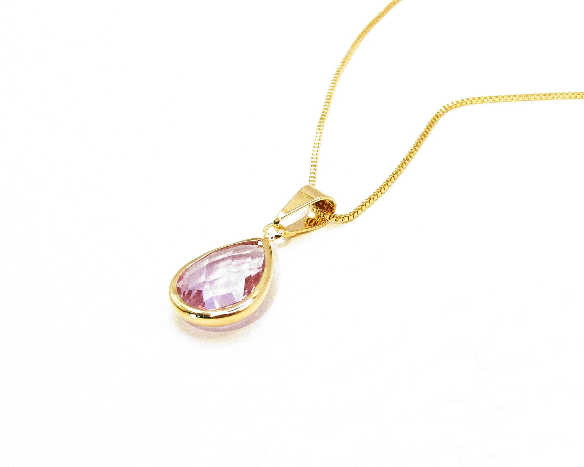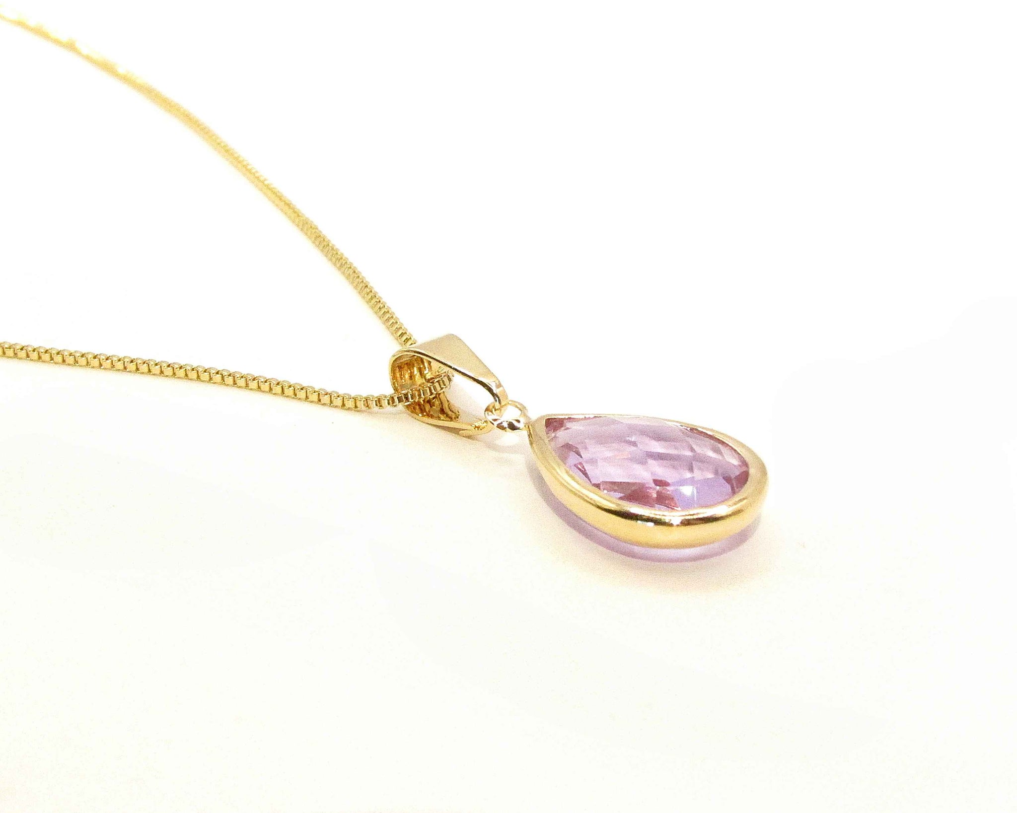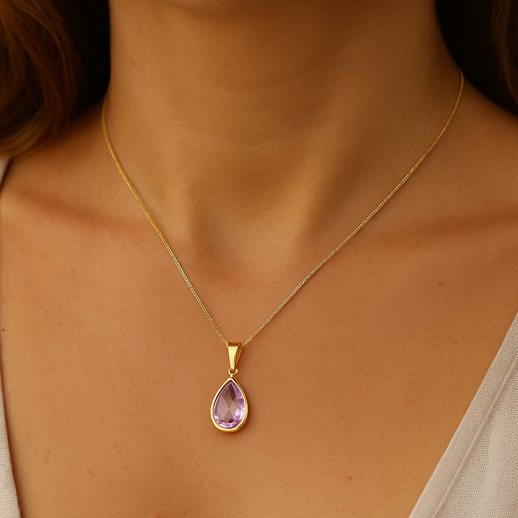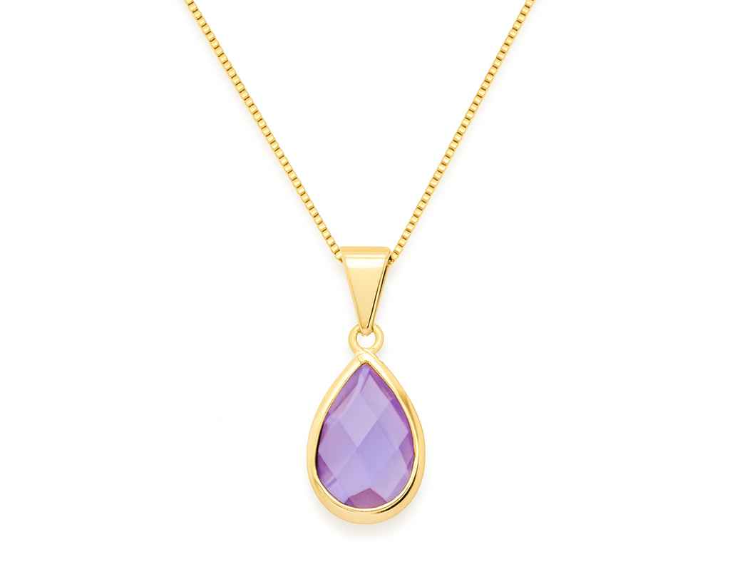 Collar cadena veneciana y colgante en forma de gota con cristal morado Amatista. Contrástalo con ropa blanca o veraniega!