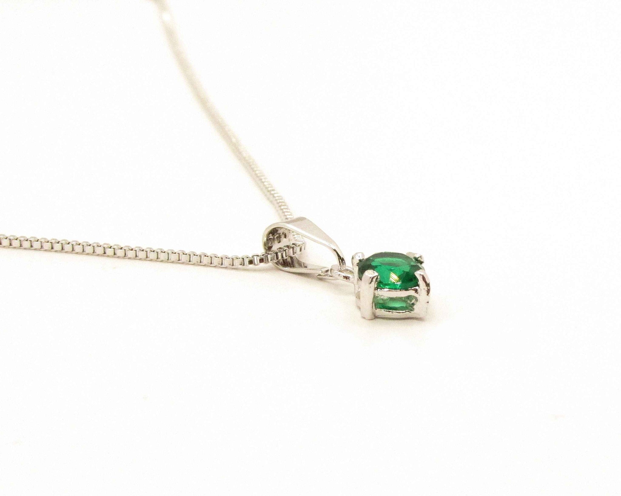 Este collar presenta un colgante con circon redondo Esmeralda de 5 mm, engastado en un delicado soporte que realza su brillo natural. La cadena veneciana, de acabado pulido, aporta una línea limpia y moderna que complementa a la perfección su tono de oro blanco.